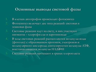 Документ охватывает тему темновой фазы фотосинтеза, включая основные реакции, значение процесса и его экологические последствия. Обсуждаются световая и темновая фазы, основные выводы, механизмы синтеза глюкозы и важность фотосинтеза для жизни на Земле. Также подчеркивается опасность недооценки значения фотосинтеза в условиях изменения климата и антропогенной деятельности.