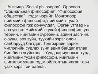 Нийгмийн философи явцууутгаараа “Нийгмийн
