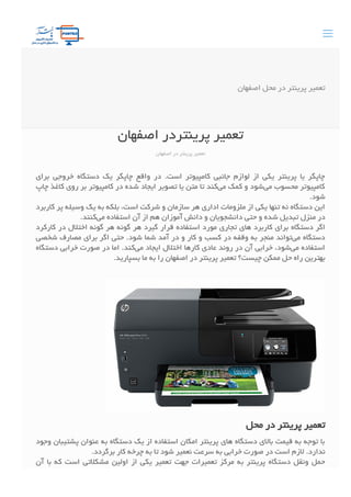 本文档讨论了在伊斯法罕进行打印机维修的必要性和相关服务。它强调了打印机在家庭和商业环境中的重要性,并介绍了提供的维修服务类型和过程。文中还提及了设备故障的常见原因、维修成本以及客户服务保障。