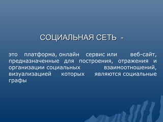 Документ рассматривает важность социальных сетей как инструмента привлечения и удержания клиентов для бизнеса. Он выделяет преимущества рекламы в социальных сетях, таких как доступность, интерактивность и возможность отслеживания результатов. Также представлены стратегии для создания качественного контента и лидогенерации, а также методы для взаимодействия с клиентами и повышения их лояльности.