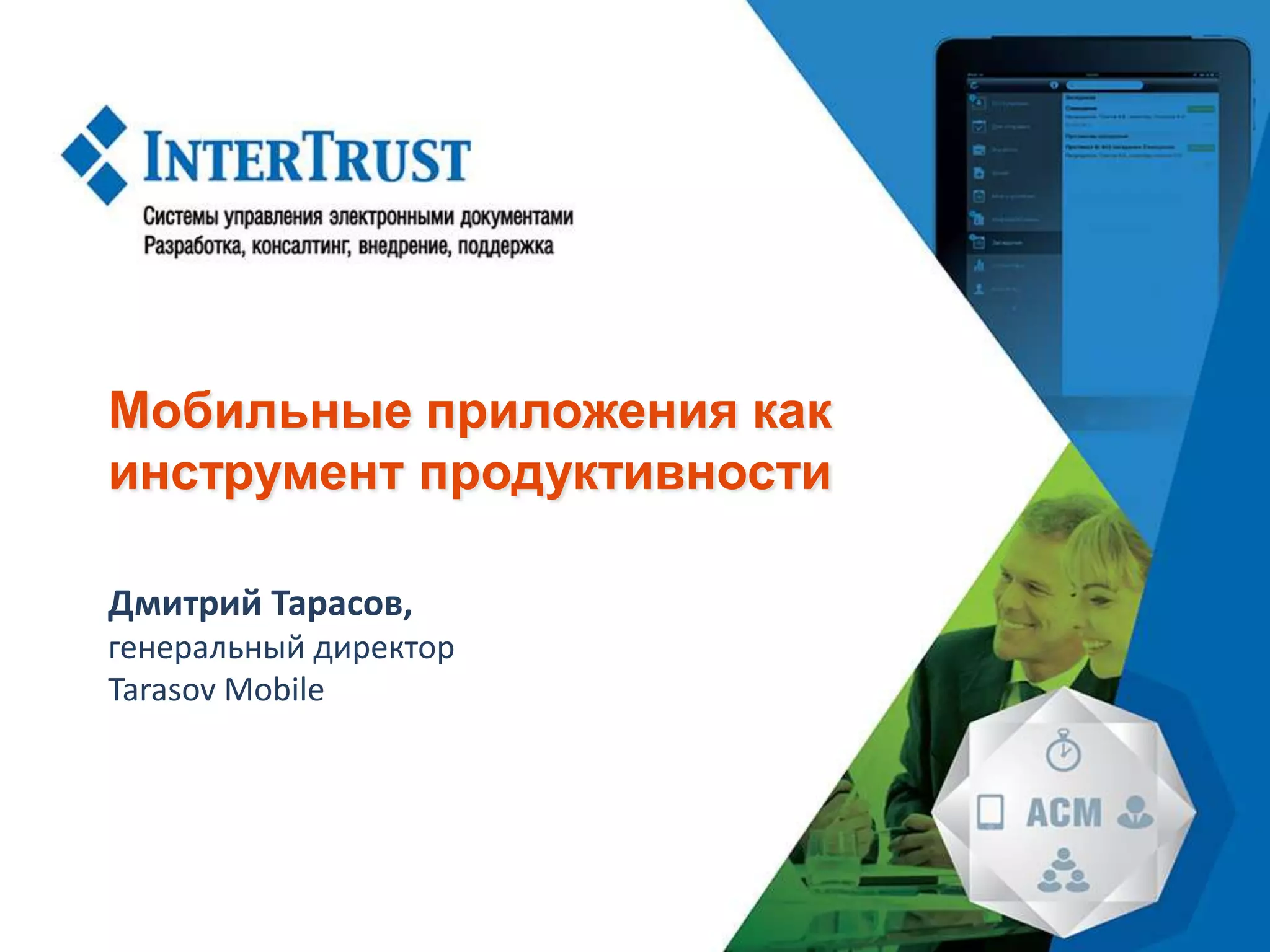 Документ рассматривает мобильные приложения как важный инструмент для повышения продуктивности и эффективности в бизнесе. Автор, Дмитрий Тарасов, подчеркивает, что мобильные решения становятся необходимостью для достижения результатов и управления задачами как для индивидуальных пользователей, так и для компаний. Также акцентируется внимание на том, что интеграция мобильных приложений в рабочие процессы повышает скорость обработки информации и обеспечивает доступ к услугам на ходу.