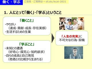働く・学ぶ ご意見・ご質問は→ sli.do/kcat-2021