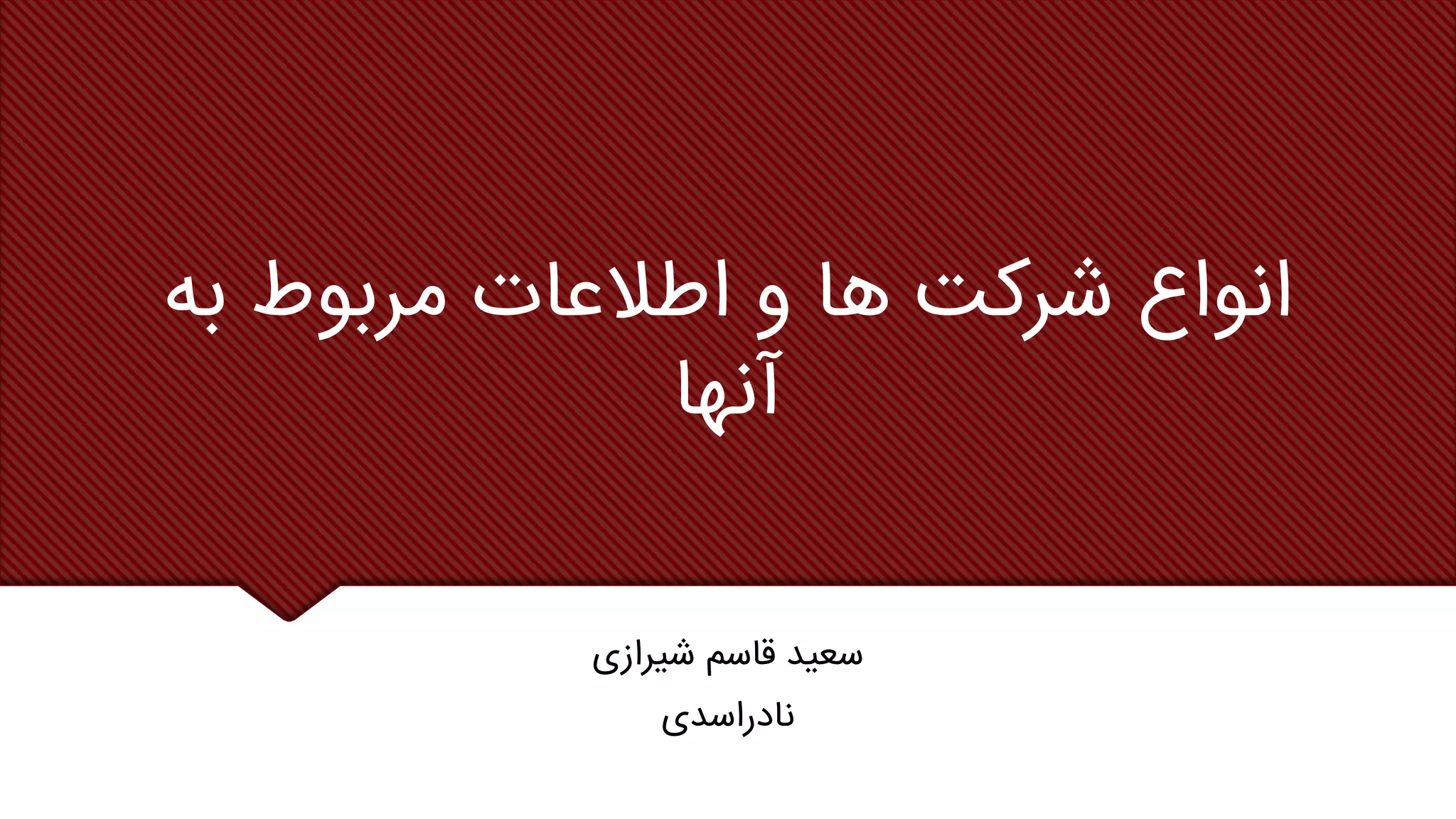 انواع مختلف شرکت ها و اطلاعات مربوط به آنها سعید قاسم شیرازی نادر اسدی