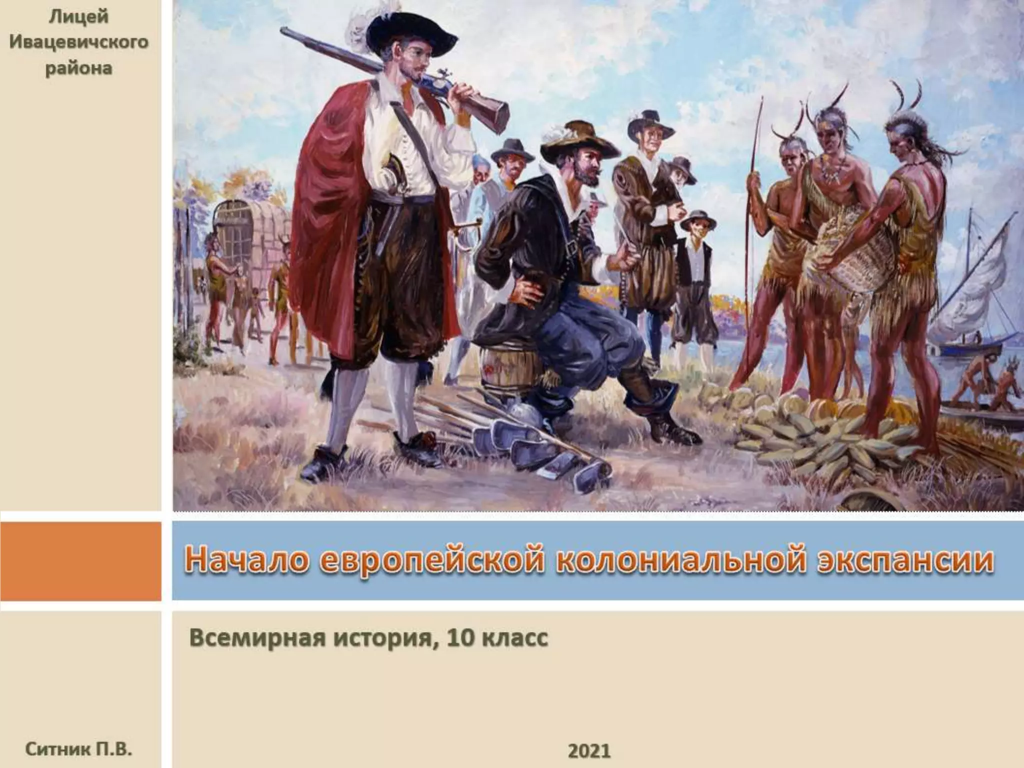 Документ описывает истоки и особенности колониальной экспансии европейских стран в XVI-XVII веках, включая экономические, политические и религиозные мотивы, а также значимые географические открытия. Рассматриваются роли ключевых государств, таких как Испания, Португалия, Франция, Англия и Нидерланды, в создании колониальных империй и борьбе за торговые пути. Также упоминаются жестокие методы колонизации и последствия для местных цивилизаций.