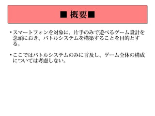 「ディフェンシブ・アタック」スマートフォン向けアクションゲームバトル素案 PPT