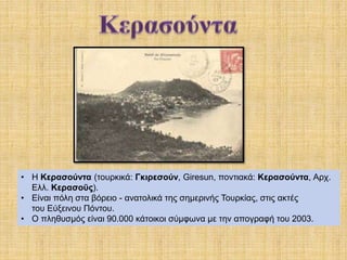 • Η Κερασούντα(τουρκικά: Γκιρεσούν, Giresun, ποντιακά: Κερασούντα, Αρχ.