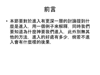 本文探讨了进入神的境界的重要性,强调信仰和顺从神的真理是获得智慧、公义、圣洁和救赎的关键。通过多个经文例证,阐述了信仰的好处以及与世俗的对立。最后,提供了作者的联系信息和学习资源,以促进对信仰的进一步探索。