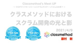 【4/9(金)Classmethod’s Meet UP ~プロダクトマネージャーのお仕事~】プロダクトマネージャーとスクラムマスターってどんな仕事?での登壇資料です。