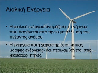μΗ αιολική ενέργεια είναι ια καθαρή πηγή