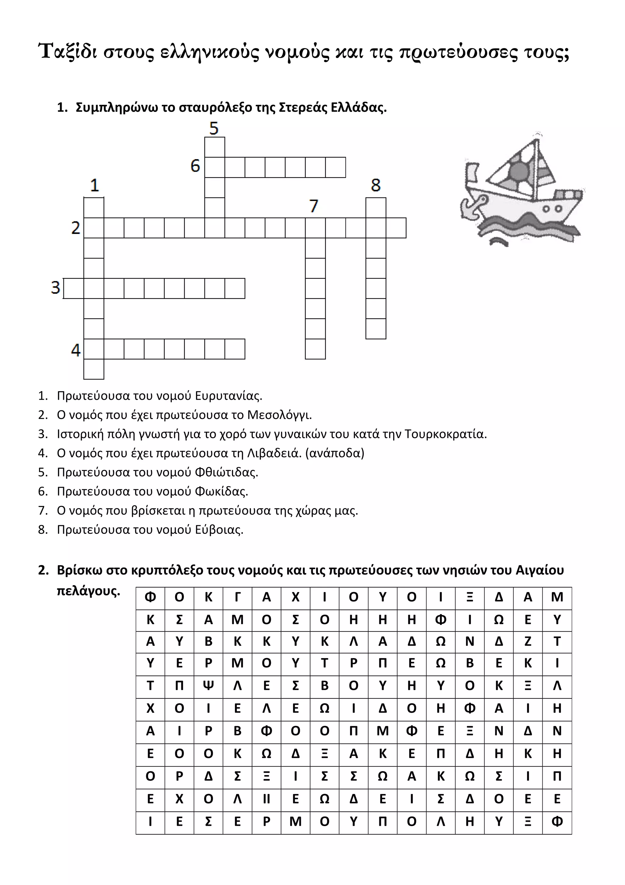 1. Συμπληρώνω το σταυρόλεξο της Στερεάς Ελλάδας.