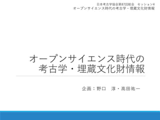 (旧版)2021/5/23更新しました 更新版はこちら:https://www.slideshare.net/atsushinoguchi/ss-248463062 日本考古学協会第87回総会セッション4「オープンサイエンス時代の考古学・埋蔵文化財情報」における趣旨説明と野口報告のスライド