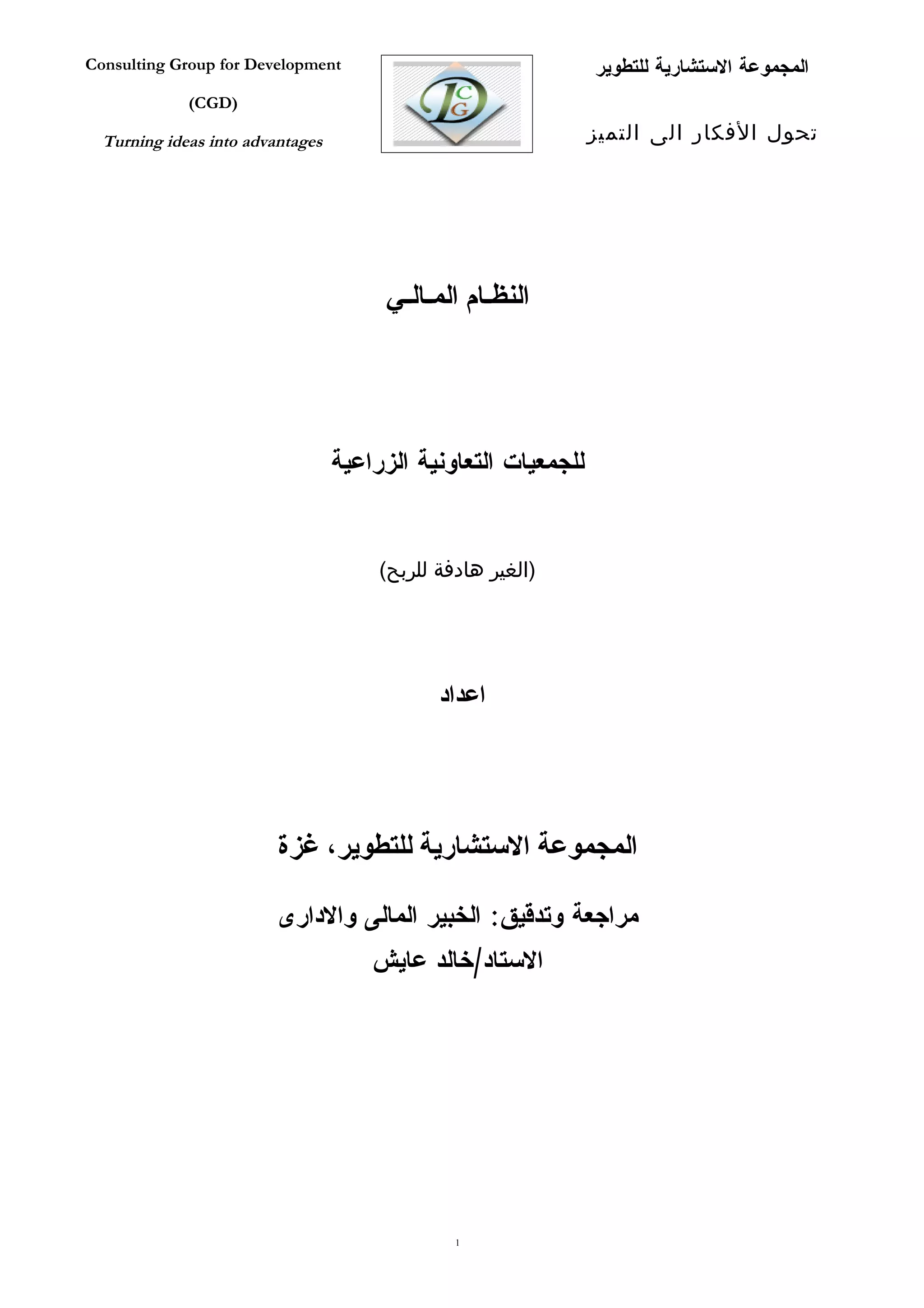 يتناول هذا المستند النظام المالي والمحاسبي للجمعيات التعاونية غير الربحية، حيث يهدف إلى ضمان تنفيذ الإجراءات المالية بشكل دقيق وشفاف. يتضمن المستند السياسات المحاسبية والإجراءات المطلوبة لتسجيل المعاملات المالية، بالإضافة إلى المسؤوليات المختلفة للأشخاص المعنيين. كما يشرح الأطر القانونية والمبادئ المحاسبية المتبعة لضمان كفاءة العمل المالي.