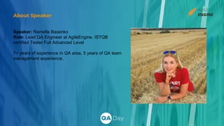 The document discusses the importance of QA process audits for improving test processes within organizations, detailing types of audits and their purposes. It covers steps for performing an audit, continuous improvement models, and industry-standard frameworks like TMMi and TPI Next. The author shares personal experiences and practical steps for implementing these models to enhance testing practices and achieve higher maturity levels in software development.