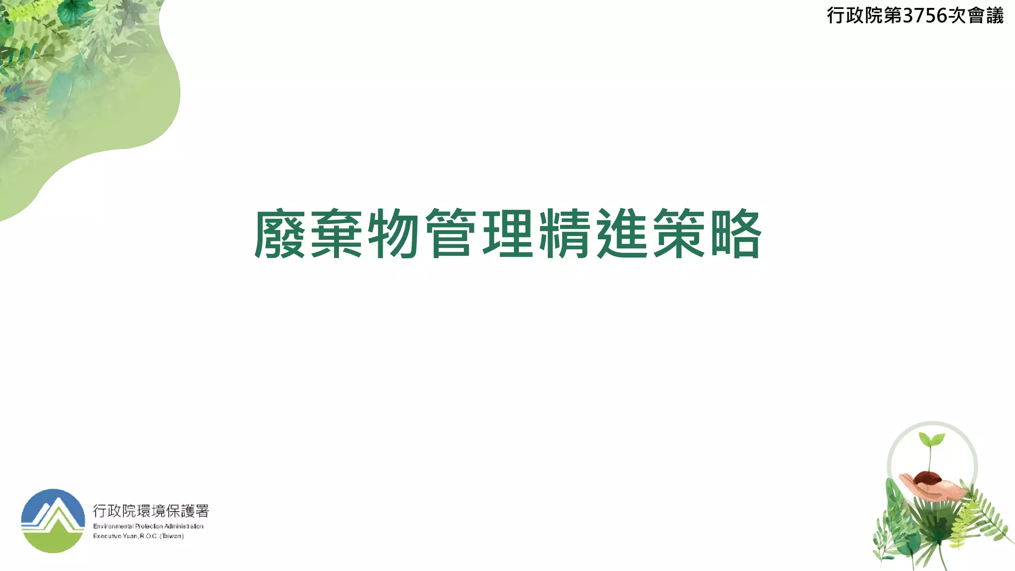 本文件总结了行政院关于废弃物管理的政策,包括增加设施能力、健全处理管道及加强监管措施。通过加速推动固体再生燃料等措施,促进废弃物的再利用与处理,同时提升违规行为的处罚力度。还提到利用科技手段加强监测和管控,以实现更有效的废弃物管理。