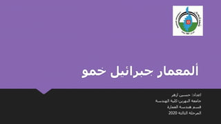 خمو جبرائيل ألمعمار، المعماري العراقي المولد في 1934، درس الهندسة المعمارية في بغداد وعُين في أمانة العاصمة حيث ساهم في مشاريع عمرانية عدة. كان له دور بارز في تصميم المباني الحديثة وتميز بأسلوبه المعماري الذي خرج عن التصاميم التقليدية. توفي في 1999، تاركاً إرثاً في العمارة العراقية.