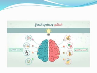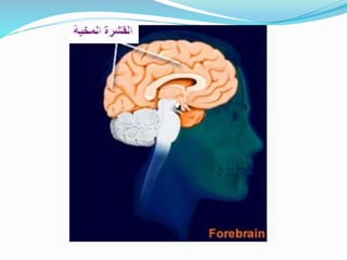 يتناول هذا الوثيقة معلومات حول الدماغ وأهميته في حياة الإنسان، حيث يعتبر مركز الذكاء والعواطف والإدراك. كما تشرح الدراسات المستخدمة لفهم وظائف الدماغ وكيفية تأثير البيئة والتغذية على أدائه. التركيب الخلوي للدماغ يتضمن نوعين أساسين من الخلايا، مما يجعله عضواً معقداً يتحكم في جميع جوانب الحياة البشرية.