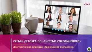 Документ описывает схемы детоксикации по 'системе соколинского', разработанные Владимиром Соколинским, специалистом в области натуропатии. Схемы направлены на восстановление токсической нагрузки в организме и предлагают комплекс нутриентов для детоксикации различных систем, включая кишечник и печень. Автор предостерегает, что данные схемы не следует использовать для самолечения и рекомендует проконсультироваться с врачом при наличии серьезных проблем со здоровьем.