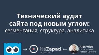 Документ посвящен техническому аудиту сайтов, включая сегментацию данных, структуру и аналитику. Обсуждаются важные аспекты, такие как индексируемость страниц, время отклика сервера и влияние настройок на трафик. Также подчеркивается необходимость регулярного проведения аудитов для отслеживания изменений и оптимизации сайта.