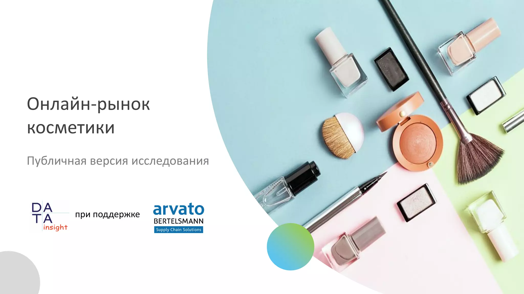Документ представляет исследование онлайн-рынка косметики в России, включая динамику интернет-продаж и конверсию сайтов. В 2020 году объем онлайн-продаж составил 95 миллиардов рублей, с ростом заказов на 158%. Основные выводы включают высокую долю интернет-магазинов косметики на рынке ecommerce и использование различных маркетинговых сервисов.