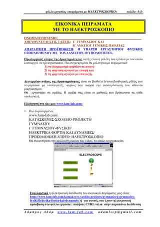 φύλλο εργασίας «πειράματαμε ΗΛΕΚΤΡΟΣΚΟΠΙΟ» σελίδα -1/4-
