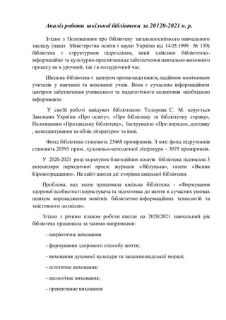 Аналіз роботи шкільноїбібліотеки за 20120-2021 н. р.