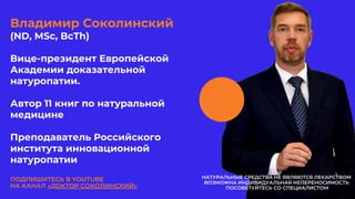 Документ обсуждает важность циркадных ритмов и их влияние на здоровье человека, связывая сбои сна с метаболическими синдромами, депрессией и другими заболеваниями. Автор, Владимир Соколинский, подчеркивает необходимость нормализации режима сна и предлагает различные решения, включая нутрицевтики и изменения в образе жизни. Также упоминаются научные исследования, подтверждающие связь между циркадными ритмами и состоянием здоровья.