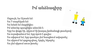 Ես սիրում եմ դպրոց գնալ, երգել, նկարել: