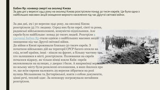 За два дні у вересні 1941 року на околиці Києва розстріляли понад 30 тисяч євреїв. Це була одна з