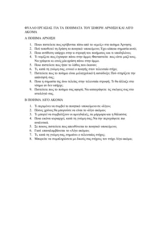 ΦΥΛΛΟ ΕΡΓΑΣΙΑΣ ΓΙΑΤΑ ΠΟΙΗΜΑΤΑ ΤΟΥ ΣΕΦΕΡΗ ΑΡΝΗΣΗ ΚΑΙ ΛΙΓΟ