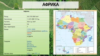 • Африка лежи от двете страни на екватора, което е предпоставка за