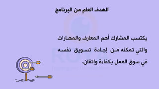 يتناول هذا المستند كيفية تطوير مهارات التسويق الذاتي والقدرة على تقديم الذات بشكل فعّال في سوق العمل. يتم التركيز على كتابة السير الذاتية بشكل احترافي وتحديد الأهداف بدقة ودعمها بالمعارف والمهارات اللازمة لتحقيق النجاح المهني. كما يناقش أهمية استخدام التقنيات الحديثة في تقديم الأهداف والتفاعل مع أصحاب العمل.