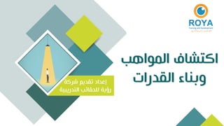 تتناول الوثيقة إعداد وتقديم رؤية تدريبية لاكتشاف المواهب وبناء القدرات، مع التركيز على تطوير الصفات والخصائص الأساسية للأفراد. تشمل المفاهيم الأساسية مختلف النواحي المعرفية والسلوكية والروحية، ودور العوامل الاجتماعية والثقافية في التنشئة. كما تتضمن طرق وأساليب لتقييم الموهوبين من خلال عدة مصادر مثل ملاحظات الأهل وترشيحات الأقران والمعلمين.