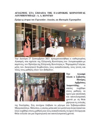 Αγιασμός στα σχολεία της Ελληνικής Κοινότητας του Λουμπουμπάσι με