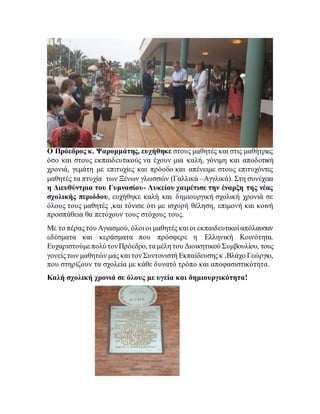 όλους τους μαθητές ,και τόνισε ότι με ισχυρή θέληση, επιμονή και κοινή