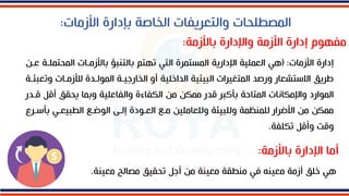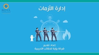 تتناول الوثيقة إدارة الأزمات وكيفية التعامل معها في المؤسسات من خلال مراحل متعددة تشمل الإنذار والاكتشاف والاستجابة. تركز الوثيقة على أهمية التخطيط والتحليل والاستعداد للتقليل من أثر الأزمات وتقديم حلول فعالة. كما تسلط الضوء على دور القيادة والكفاءة في إدارة الأزمات بنجاح.