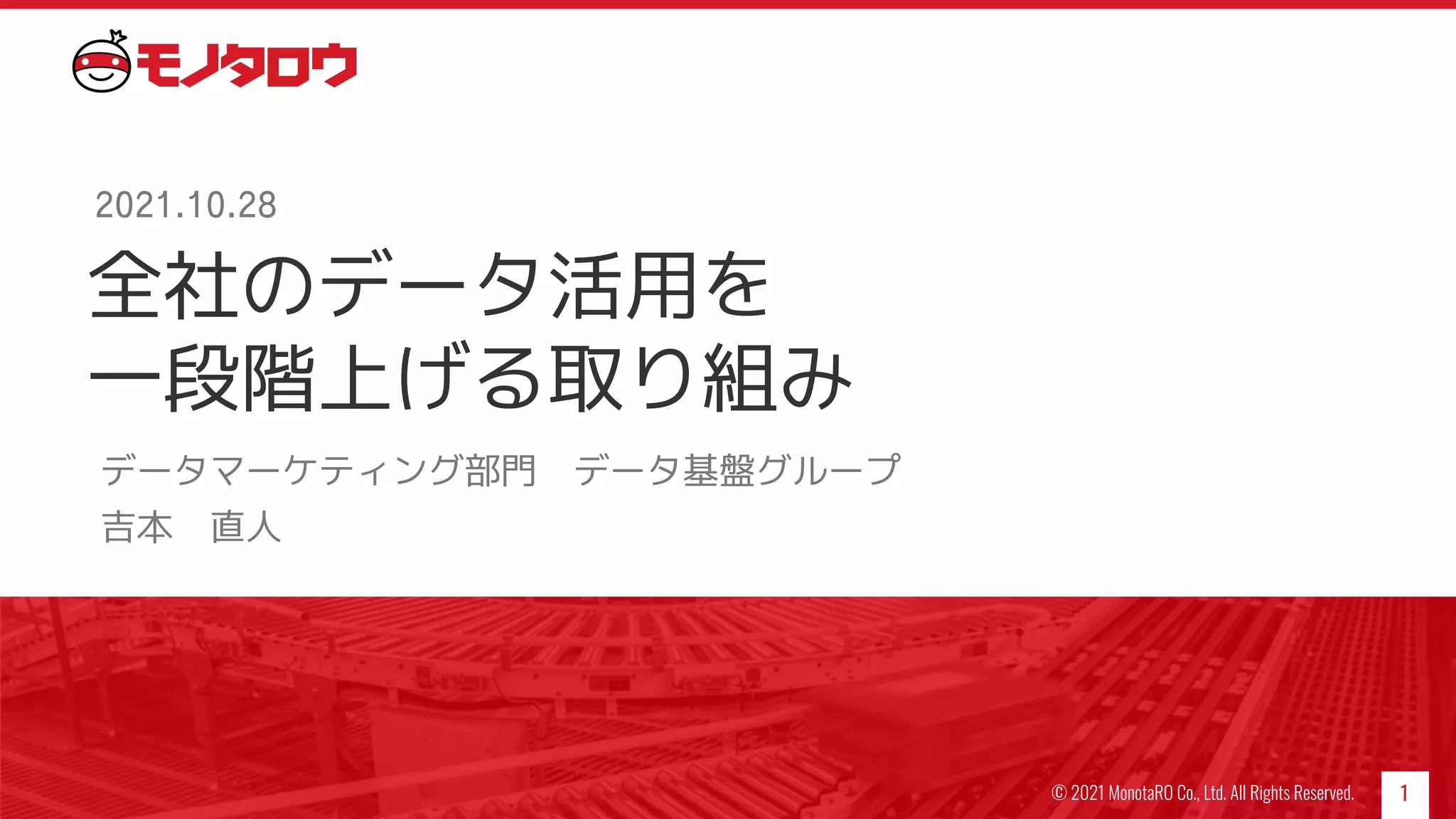 全社のデータ活用を 一段階上げる取り組み データマーケティング部門 データ基盤グループ 吉本 直人 1 2021.10.28 © 2021 MonotaRO