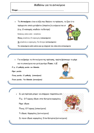 Το Αντικείμενοείναι η λέξη που δηλώνει το πρόσωπο, το ζώο ή το