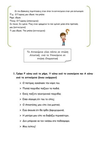 1. Γράψε Ρπάνω από το ρήμα, Υ πάνω από το υποκείμενο και Α πάνω