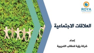تتناول الوثيقة أهمية العلاقات الاجتماعية وكيف تؤثر في التفاعل بين الأفراد والأسرة. تعرف الوثيقة أنواع العلاقات الاجتماعية ومستوياتها، وتبرز دورها في بناء الثقة والتواصل الفعال. كما تشير إلى أهمية تطوير المهارات الشخصية لتعزيز العلاقات وتحقيق النمو الاجتماعي.