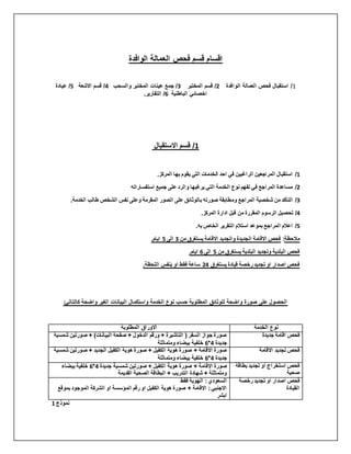 يتناول الوثيقة إجراءات فحص العمالة الوافدة والتي تتضمن عدة أقسام مثل استقبال، مختبر، وأشعة. يوضح الوثيقة المستندات المطلوبة، مدة الفحوصات، ويحدد الإجراءات المختلفة التي يجب اتخاذها عند التقديم. كما يسجل البيان تفاصيل عمليات الفحص ودور كل قسم في تسهيل الإجراءات لتجديد الإقامة أو إصدار التصاريح.