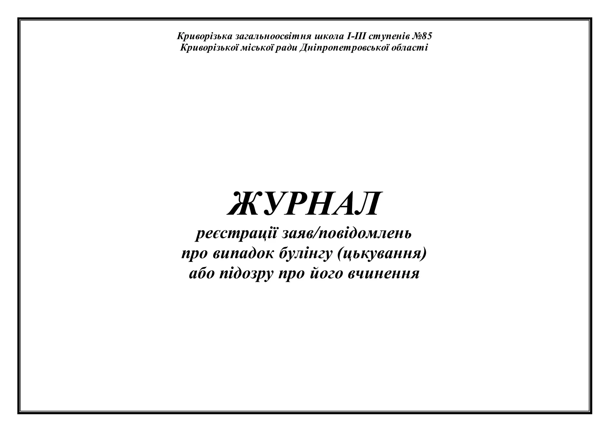 зразок журналу реєстрації заяв про випадки булінгу 1. Криворізька загальноосвітня школа І-ІІІ ступенів №85