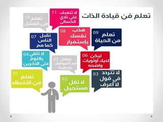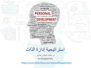 يتناول هذا الوثيق استراتيجيات إدارة الذات والتقييم الشخصي لتحقيق القدرات والأهداف. يتطرق إلى كيفية تطوير الفرد لمهاراته الذاتية وفهم نقاط القوة والضعف. كما يبرز أهمية التخطيط لتحقيق الأهداف بفعالية.