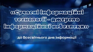 До Всесвітнього дня інформації сектор журнальної періодики презентує віртуальну виставку «Сучасні інформаційні технології – джерело інформаційної небезпеки». Запрошуємо до перегляду.