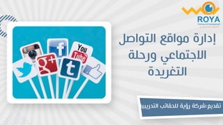 تتناول الوثيقة مفهوم إدارة وسائل التواصل الاجتماعي وأهمية استخدامها في التواصل الفعال وتبادل المعلومات. تُعرض في الوثيقة مميزات وعيوب هذه الوسائل، بالإضافة إلى استراتيجيات لتطوير حسابات التواصل الاجتماعي وتحليل البيانات لتحقيق الأهداف التجارية. يتم التركيز على كيفية استخدام هذه المنصات لتعزيز الوعي بالعلامات التجارية وزيادة التفاعل مع الجمهور.