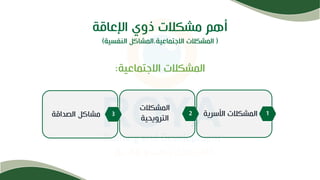 تتناول الوثيقة إعداد الحقائب التدريبية للمراهقين ذوي الاحتياجات الخاصة، حيث تركز على المشكلات النفسية والاجتماعية مثل المشاكل الأسرية والترويحية والصداقة. كما تحدد السمات الأساسية للمشكلات النفسية، مثل الشعور بالنقص والعجز، وتسلط الضوء على ضرورة مراعاة الفروق الثقافية في التعامل مع هؤلاء الشباب.