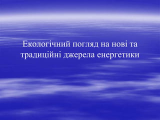 комплексної оцінки цього джерела енергії, його