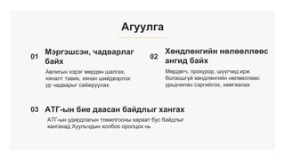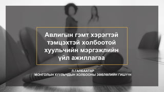 Similar to Авлигын гэмт хэрэгтэй тэмцэхтэй холбоотой хуульчийн мэргэжлийн үйл ажиллагаа