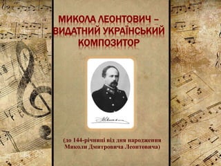 Творчість Миколи Дмитровича Леонтовича є неоціненним скарбом української національної музики.