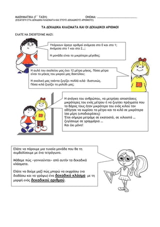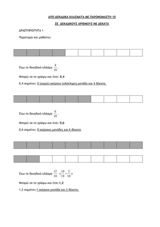 (ΕΙΣΑΓΩΓΗ ΣΤΑ ΔΕΚΑΔΙΚΑ ΚΛΑΣΜΑΤΑ ΚΑΙ ΣΤΟΥΣ ΔΕΚΑΔΙΚΟΥΣ ΑΡΙΘΜΟΥΣ)