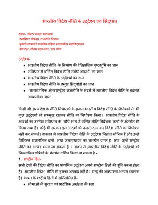 ु छ उद्देश्यों को सम्मुख रखकर नीति का निर्धारण किया। भारतीय विदेश नीति क